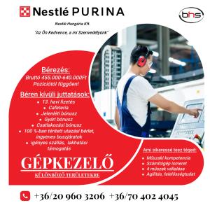 Partnerünk az állateledel-gyártás területén vezető szerepet betöltő Nestlé-Purina számára keresünk munkatársakat különböző nyitott pozíciókba |